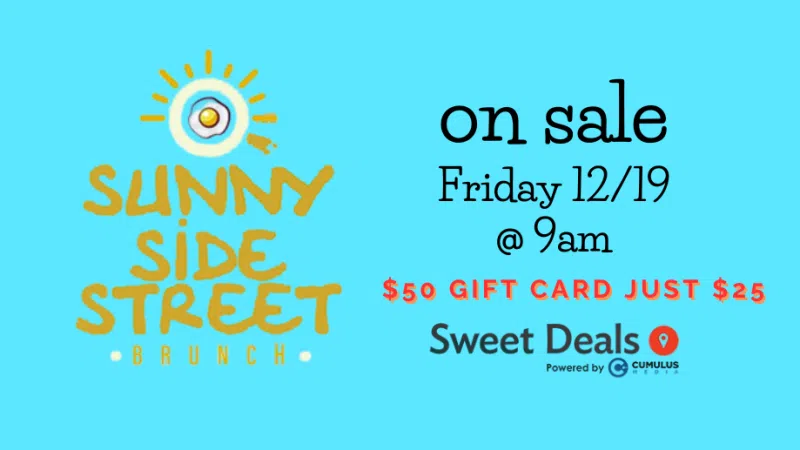This Friday at 9am, grab your Sunny Side Street Brunch Sweet Deal, $50 worth of gift cards for just $25 right HERE Start your day on the bright side-Sunnyside Street Brunch in Washington at 1964 Freedom Pkwy! Where every plate is a reason to smile and every sip feels like su...